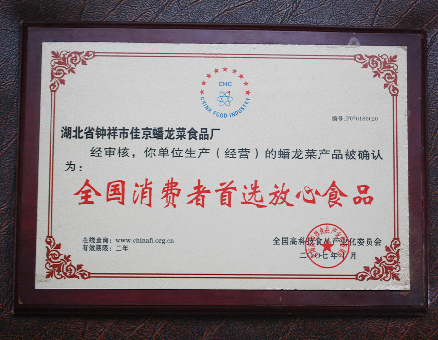 全國消費者首選放心食品